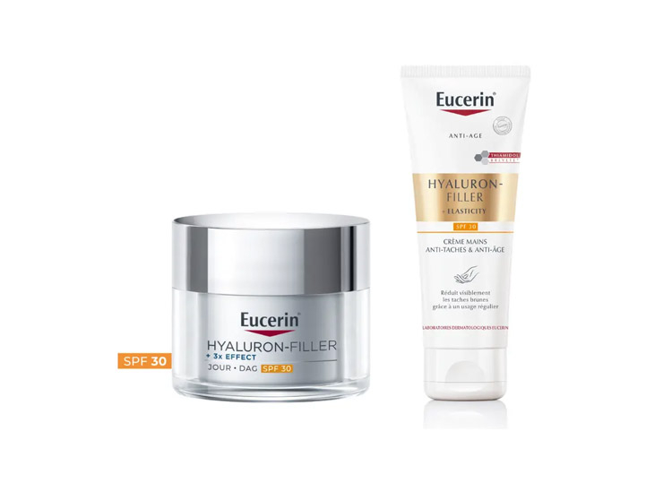 Le coffret Eucerin Hyaluron-Filler constitue une routine anti-âge complète et efficace pour cibler les premiers signes du vieillissement cutané sur le visage comme sur les mains. Grâce à des formules dermatologiques hautement performantes, il agit en synergie pour lisser les rides, améliorer l’élasticité de la peau et prévenir l’apparition des taches pigmentaires.