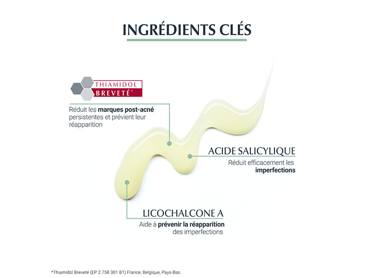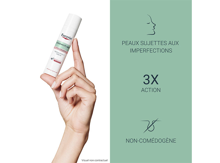 Le Sérum Triple Action DermoPure Eucerin au Thiamidol* breveté offre une solution globale pour les peaux sujettes aux imperfections grâce à 3 actions clés :