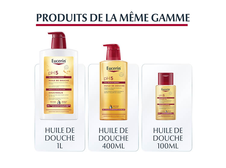 L'Huile de Douche Eucerin pH5 a été spécialement développée avec des agents extra-doux adaptés au nettoyage des peaux sèches et sensibles. La formule unique Eucerin pH aide à protéger les défenses naturelles de la peau et préserver sa résistance.