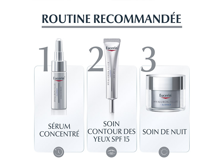 - Pour de meilleurs résultats, utilisez en combinaison avec le Contour des Yeux et le Soin de Jour SPF 30 de la même gamme HYALURON-FILLER + 3x EFFECT.