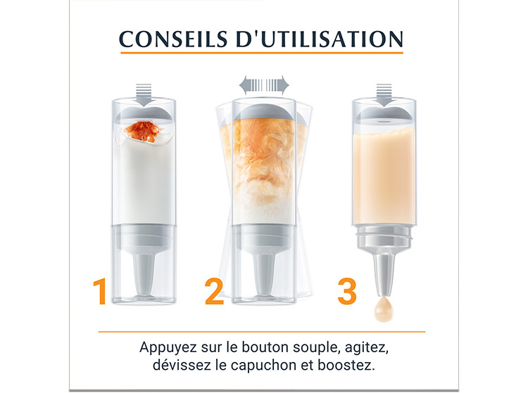 Appliquez Eucerin HYALURON-FILLER + 3x EFFECT SÉRUM VITAMINE C BOOSTER le matin ou le soir avant votre soin, ou mélangez-le avec votre soin.