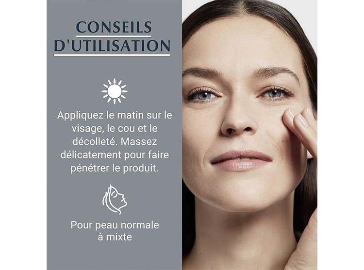 - Appliquez le matin sur le visage, le cou et le décolleté bien nettoyés