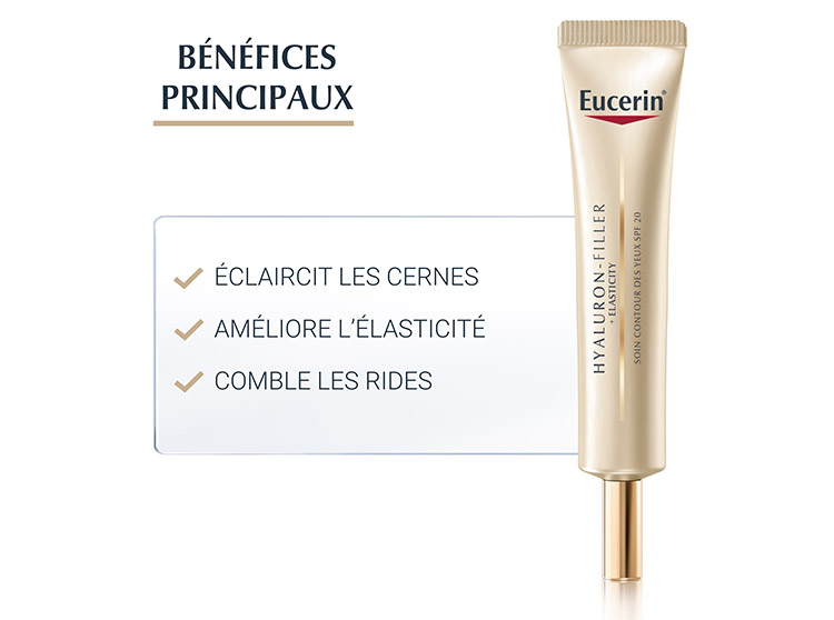 Eucerin Hyaluron-Filler + Elasticity Contour des Yeux, soin contour de l'oeil anti-âge, soin anti-rides, soin anti-cernes pour peaux matures, soin pour réduire les signes de l'âge du contour des yeux Eucurin Hyaluron Filler, Soin Eucerin à l'acide hyaluronique pour combler les rides, soin Eucerin pour améliorer l'élasticité du contour des yeux, crème pour peaux matures contre les rides et les poches, soin Eucerin Hyaluron Filler Elasticity acide hyaluronique et collagène de la peau, soin spécifique pour peaux matures Eucerin, soin anti-rides et anti-cernes Eucerin Hyaluron Filler Elasticity.