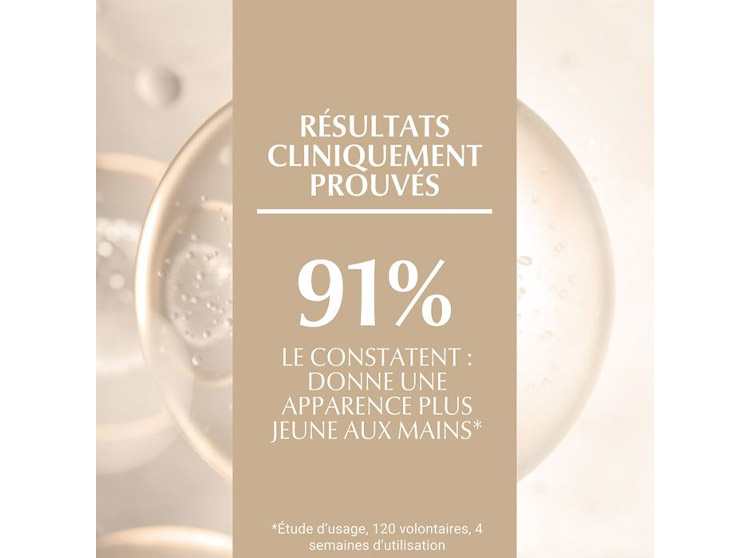 La protection SPF 30 offre une protection efficace contre le soleil et prévient la formation de futures taches brunes et du vieillissement cutané induits par le soleil. Les taches de vieillesse sur les mains sont visiblement réduites et la peau paraît uniforme et éclatante.