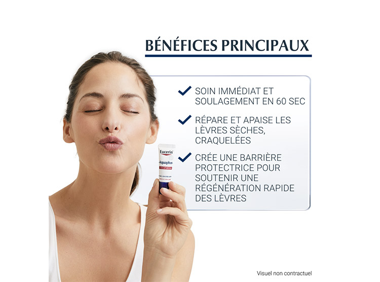 La plupart des gens souffrent de lèvres sèches et craquelées. Elles sont inconfortables, parfois douloureuses, et peuvent aussi nous mettre mal à l'aise. Elles ont besoin de soins SOS, et Eucerin Aquaphor Réparateur Lèvres SOS leur apporte un soin immédiat et un soulagement en 60 secondes.