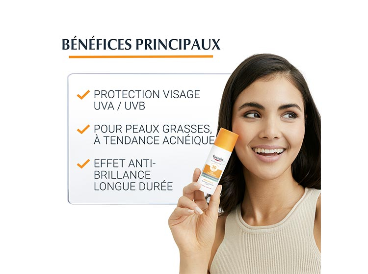 Ingrédients clés de la crème solaire visage pour peaux grasses Eucerin Sun Protection Oil Control :