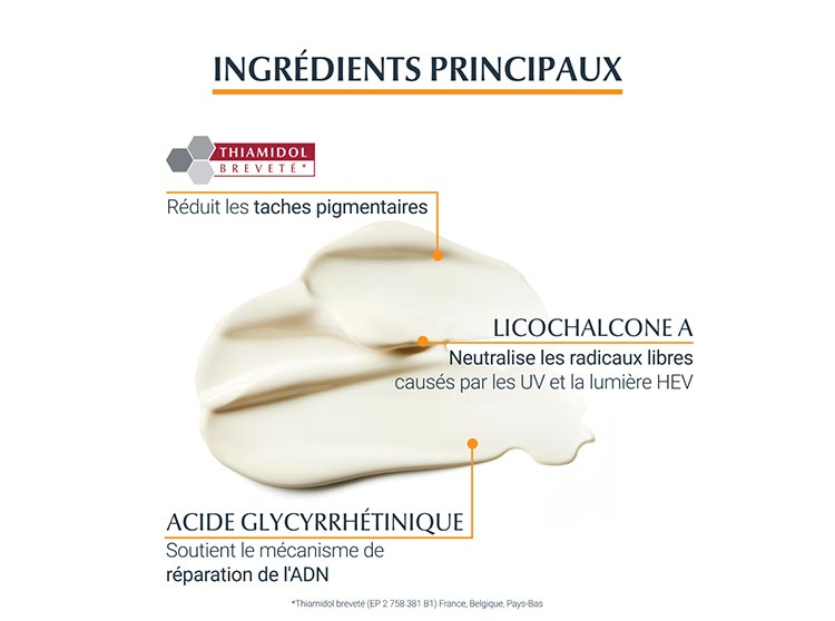 Ingrédients clés de la crème solaire anti-taches visage Eucerin Sun Pigment Control Fluid SPF50+ :