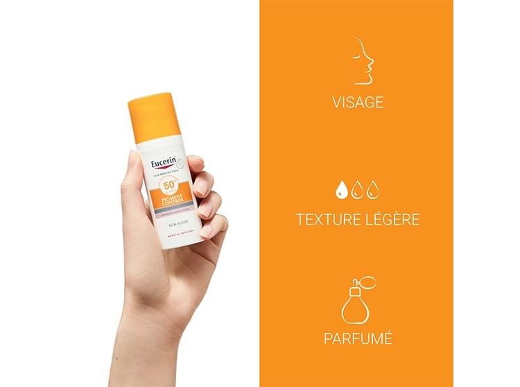 Eucerin Sun Pigment Control Fluid SPF50+, crème solaire Eucerin pour le visage, soin solaire contre l'hyperpigmentation de la peau, Eucerin Sun Pigment Control pour réduire les taches brunes du visage, Protection UVA/UVB SPF50+, crème solaire visage contre les taches de vieillesse, crème solaire visage haute protection SPF50+, taches d'hyperpigmentation, soin solaire pour prévenir les taches pigmentaires, fluide solaire visage contre les taches brunes, crème solaire Eucerin anti-tâches pigmentaires, Fluide Solaire Eucerin Sun Pigment Control efficace contre les taches brunes.