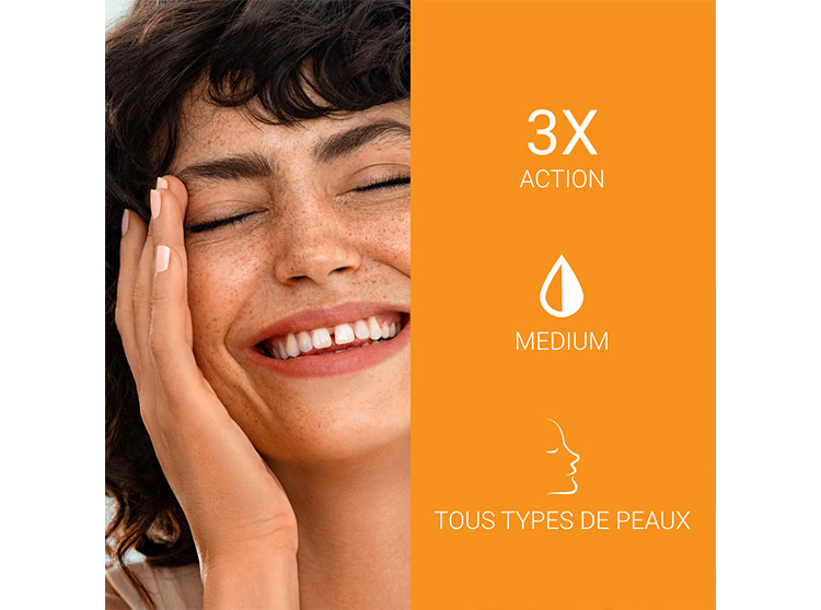 La lumière UV est la principale cause des dommages cutanés causés par le soleil, mais la Lumière Visible de Haute Energie (HEVIS) peut également induire des radicaux libres qui provoquent un stress supplémentaire pour la peau. La lumière du soleil déclenche une augmentation de la production de mélanine qui peut entraîner des problèmes d'hyperpigmentation tels que des taches brunes liées au soleil. Eucerin Sun Pigment Control Gel-Crème Teinté SPF 50+ est une protection solaire quotidienne 3 en 1 pour le visage, destinée à tous les types de peau. Il protège la peau des effets néfastes du soleil, prévient l'apparition des taches pigmentaires, réduit les taches pigmentaires existantes, et couvre immédiatement les taches et irrégularités du teint.