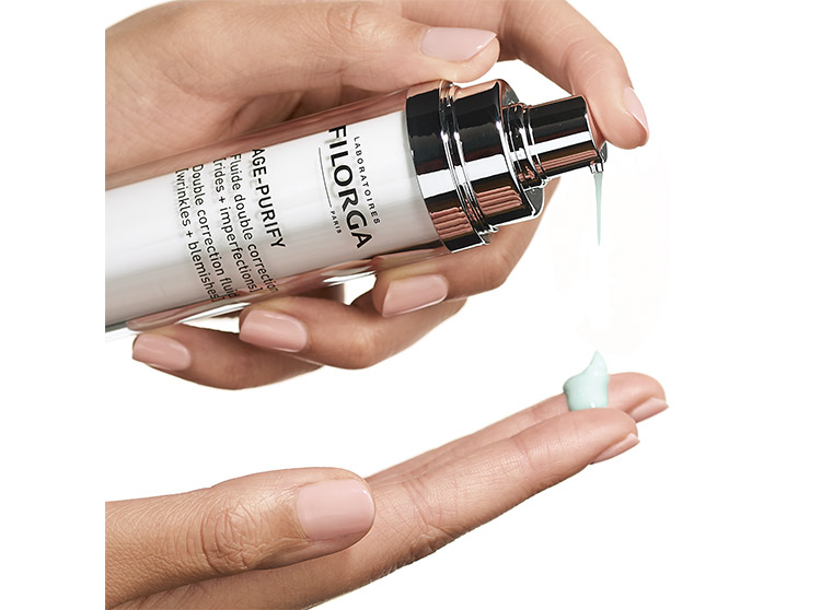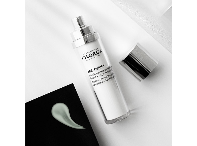 Découvrez Age-Purify fluide visage double correction de la marque Filorga, le 1er soin développé avec des médecins esthétiques et des dermatologues pour une peau simultanément plus lisse et plus nette. Grâce à son action sur les rides et les imperfections persistantes (pores dilatés, brillances, boutons, points noirs et rougeurs). Ce fluide visage détoxifie la peau tout en agissant sur l’apparition des premiers signes de l’âge.