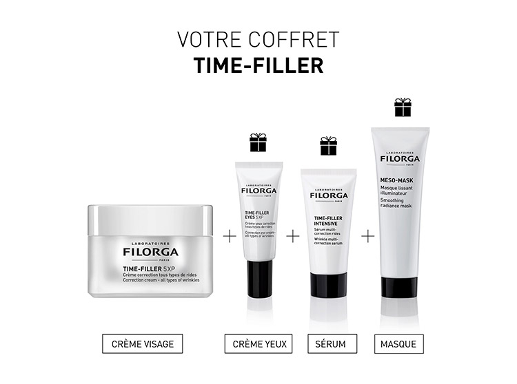 Découvrez le pouvoir anti-rides ultime avec le Coffret TIME-FILLER 5XP des Laboratoires Filorga. Ce coffret luxueux regroupe quatre soins incontournables pour cibler les cinq types de rides et offrir à la peau une seconde jeunesse. Inspiré des techniques de médecine esthétique, ce coffret combine des formules avancées pour corriger les rides, raffermir la peau et raviver l'éclat du teint. Le coffret inclut la Crème TIME-FILLER 5XP (50ml), le Sérum TIME-FILLER Intensive (7ml), le Masque MESO-MASK (30ml), et la Crème Yeux TIME-FILLER Eyes 5XP (4ml).