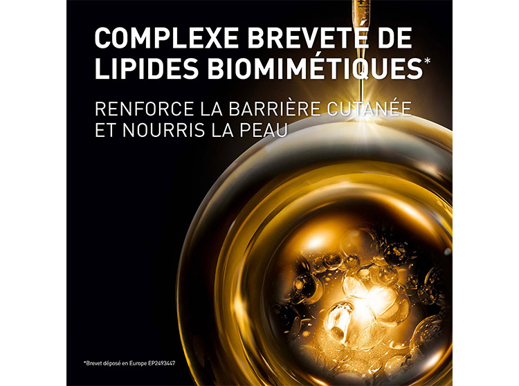 Sa formule multi-active concentrée nourrit intensément les peaux fatiguées et dévitalisées grâce à 3 super-nutriments synergétiques qui restaurent élasticité et vitalité. Elle associe également 50 méso-ingrédients et 4 boosters cellulaires, inspirés des techniques de médecine esthétique, pour lutter contre tous les signes visibles de l’âge :