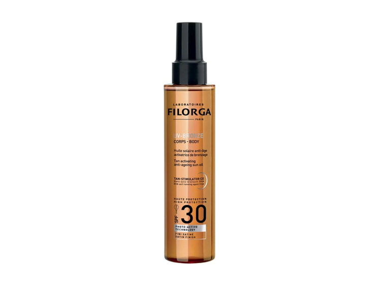 UV-BRONZE CORPS SPF30, l’huile solaire SFP30 anti-âge vitaminée aux antioxydants pour un bronzage de la peau en toute sécurité.