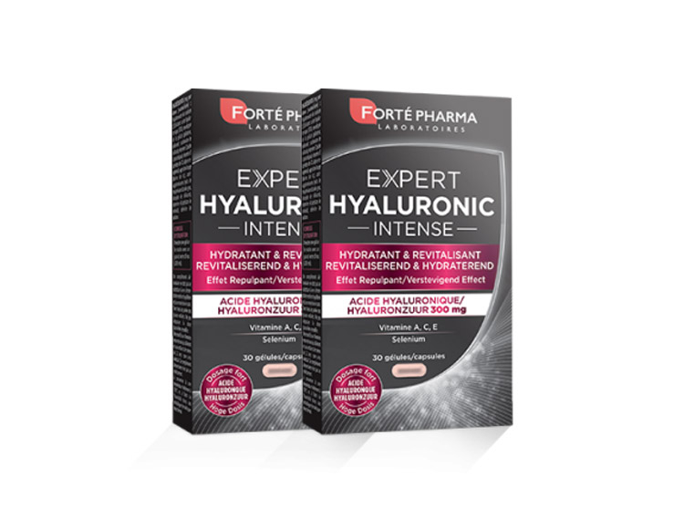 Expert Hyaluronic Intense est un complément alimentaire à l’action anti-âge qui aide à hydrater, revitaliser(2)(3) et repulper la peau. Sa formule est hautement dosée en acide hyaluronique. Elle contient de la vitamine A(1) qui contribue au maintien d'une peau normale et donc à une bonne hydratation bien hydratée. Expert Hyaluronic Intense repulpe la peau de l’intérieur, améliore son élasticité et révèle tout son éclat. Expert Hyaluronic Intense participe également à la protection contre le vieillissement cutané prématuré grâce au complexe anti-oxydant composé des vitamines C, E et du Sélénium(2).