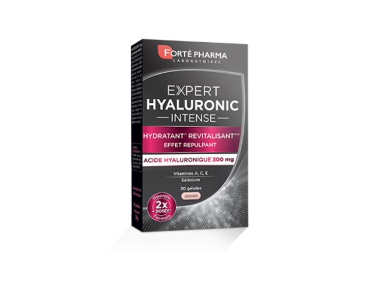 Expert Hyaluronic Intense est un complément alimentaire à l’action anti-âge qui aide à hydrater, revitaliser(2)(3) et repulper la peau. Sa formule est hautement dosée en acide hyaluronique. Elle contient de la vitamine A(1) qui contribue au maintien d'une peau normale et donc à une bonne hydratation bien hydratée. Expert Hyaluronic Intense repulpe la peau de l’intérieur, améliore son élasticité et révèle tout son éclat. Expert Hyaluronic Intense participe également à la protection contre le vieillissement cutané prématuré grâce au complexe anti-oxydant composé des vitamines C, E et du Sélénium(2).