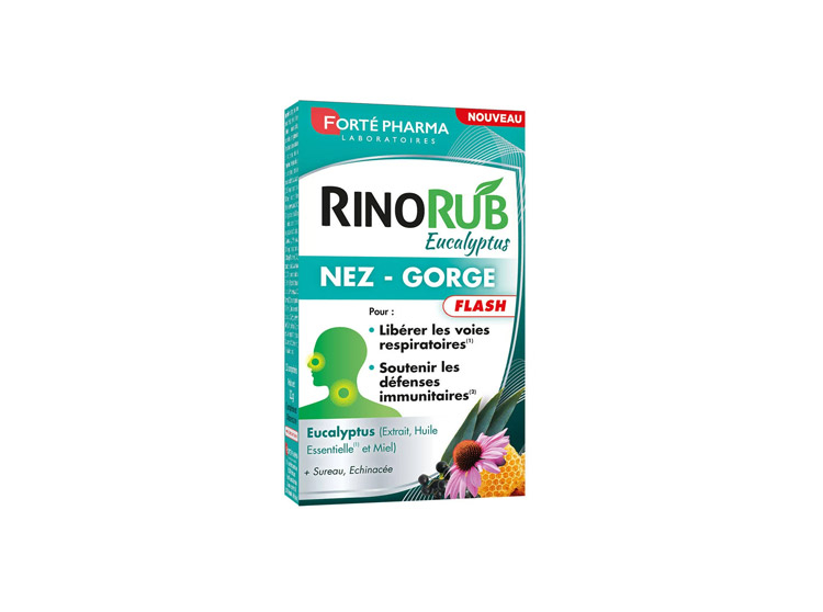 Rinorub de Forté Pharma est un complément alimentaire pour le nez et la gorge en cas de rhume et aider au confort respiratoie, à soutenir les défenses immunitaires et à adoucir la gorge. Sa fomrule complète associe :