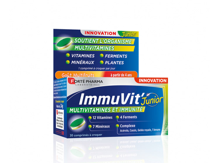 Immuvit’ Junior soutient l’immunité(1) et apporte des multivitamines grâce à sa formule complète.