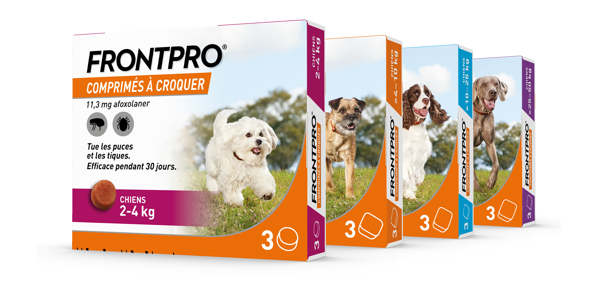 Les comprimés Frontpro peuvent traiter tous les types de chiens selon leur poids, grâce à 4 dosage différents.