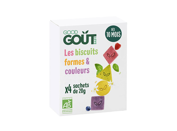 Les biscuits formes et couleurs de la marque Good Gout s'inspirent de la pédagogie Montessori, pour permettre à l'enfant de déguster un délicieux biscuit tout en apprenant !
