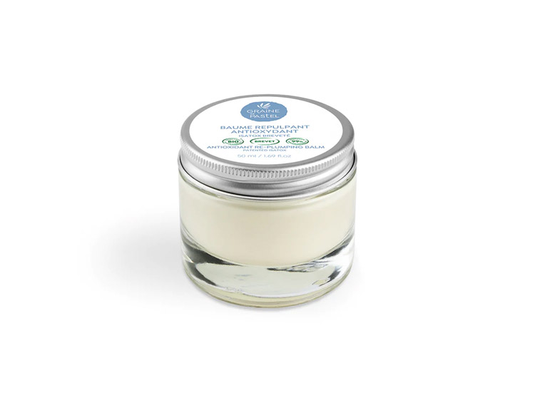 Détoxifiée, la peau se régénère : elle paraît revitalisée de l’intérieur et retrouve toute son énergie. Grâce au baume repulpant antioxydant BIO Graine de Pastel, la qualité de la peau s’améliore visiblement : le grain de peau s’unifie, le teint semble plus frais et lumineux.