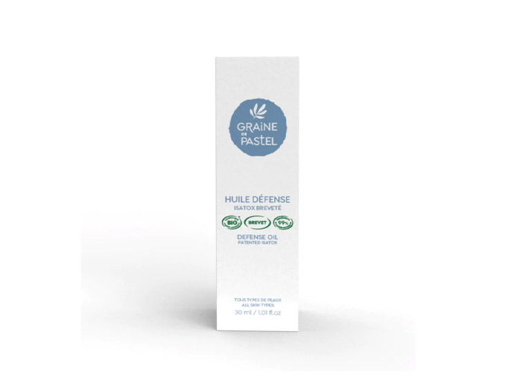 L'huile défense antioxydante BIO Graine de Pastel est formulée à 99% d'ingrédients d'origine naturelle et est certifiée biologique.