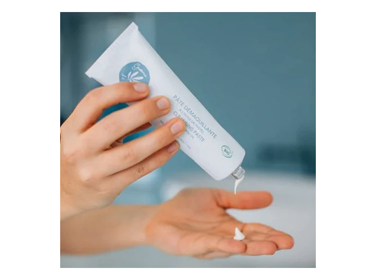 Appliquer la Pâte Démaquillante Graine de Pastel sur peau sèche, sur l’ensemble du visage et des yeux. Masser délicatement puis rincer abondamment.
