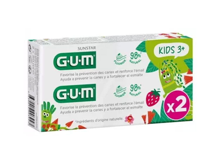 Le dentifrice pour enfants goût fraise de la marque GUM a été spécialement formulé avec du fluor et de l'isomalt, il aide à prévenir les caries et renforce l'émail des dents de lait.