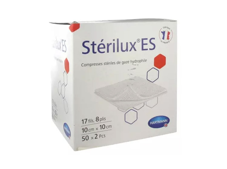 Les compresses Stérilux ES de Hartmann sont des compresses stériles en gaze hydrophile, mesurant 10 x 10 cm, conditionnées par 50 sachets de 2 compresses. Elles sont conçues pour le soin des plaies et idéales pour le nettoyage des plaies nécessitant une détersion efficace, qu'il s'agisse de plaies aiguës, souillées ou chroniques. Elles peuvent également être utilisées pour couvrir des plaies faiblement exsudatives ou comme pansement secondaire afin d'absorber les exsudats et protéger la plaie.