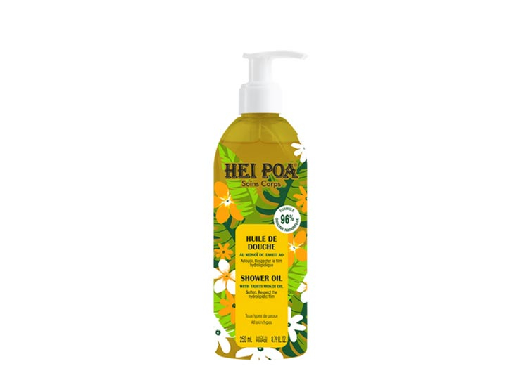 L'huile de douche au monoï de Tahiti Heo Poa nettoie en douceur le visage et le corps. Au Monoï de Tahiti, elle respecte le film hydrolipidique de la peau pour préserver sa douceur, la peau est désormais hydratée et nourrie au quotidien.