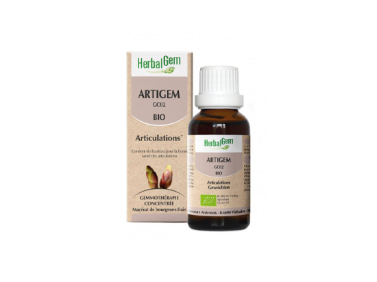 Le complexe de gemmothérapie Herbalgem Artigem est un complément alimentaire en gouttes buvables à base de macérat de bourgeons frais qui favorise la souplesse des articulations.