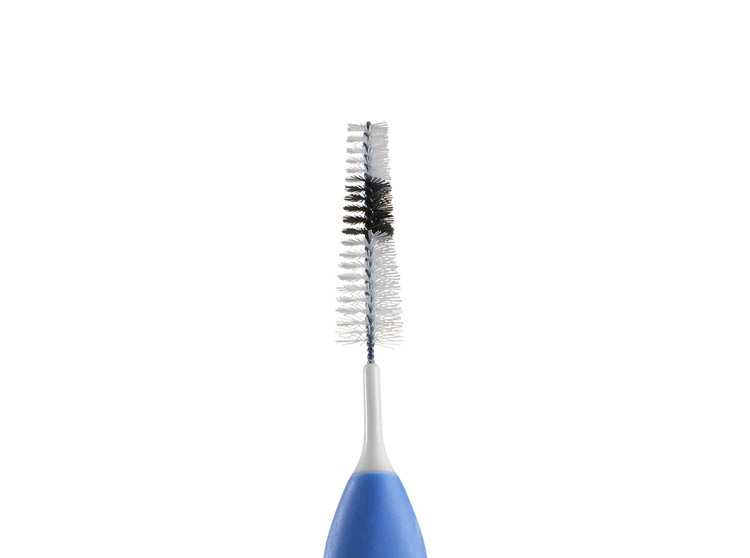 Ses fibres en tynex sont gages d'efficacité et de durabilité. Ses fibres bicolores, blanches permettent d'identifier les saignements et la plaque dentaire. Et sa tige en acier inoxydable recouvert de polyuréthane permet de prévenir des blessures. La forme conique est particulièrement adaptée pour nettoyer les espaces interproximaux entre les molaires et prémolaires.