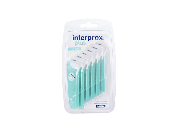La brossette Interprox Plus Micro verte se présente par boite de 6 unités est équipée d'une brosse de 2,4 mm, pour des espaces interdentaires de 0,9 mm et possède un capuchon protecteur pour la brosse qui assure une hygiène optimale. Avec son manche rigide et son angle à 90° elle est très pratique pour atteindre toutes les zones de la bouche.