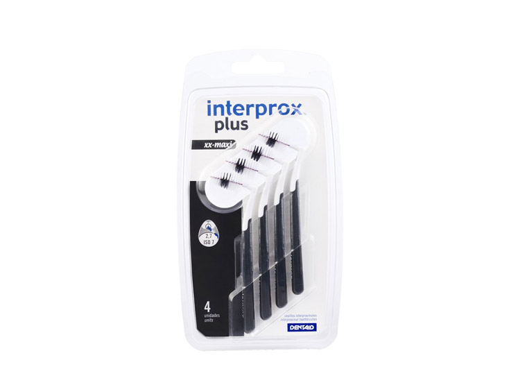 Avec son manche rigide et son angle à 90° très pratique pour atteindre toutes les zones de la bouche, la brossette Plus XX-MAXI noire 4 unités est équipée d'une brosse de 6 à 11 mm, pour des espaces interdentaires de 2,7 mm et possède un capuchon protecteur pour la brosse qui assure une hygiène optimale.