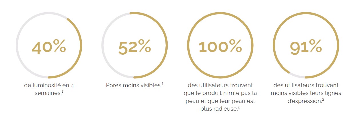 Prévient l’apparition des premiers signes de l’âge et rend la peau plus lumineuse. Pour une peau radieuse dès la première application ! ¹