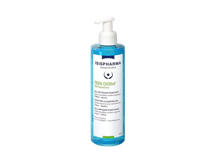 Gel nettoyant - Nettoyant - Nettoyant gel - Gel purifiant - Gel nettoyant purifiant - Isispharma - Isispharma Teen Derm - Teen Derm - Isispharma Teen derm Gel sensitive - Teen Derm Gel sensitive - Gel sensitive - Peaux grasses - peaux à imperfections - Peaux grasses à imperfections - Hygiène de la peau - Apaisant - peaux sensibles fragilisées - Nettoyant acné - Acné - Traitement acné - Soin dermatologique - Dermatologique - Conseillé par les dermatologue - Adapté aux adolescents - Adapté aux adultes - Adapté aux femmes enceinte - Nettoyant douceur - élimine excès de sébum - sébum - Limite la prolifération - Prolifération bactérienne