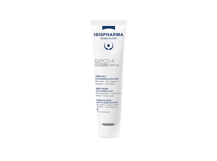 La crème de nuit GLYCO-A SOFT Peeling offre à tous l’efficacité d’un peeling superficiel chez soi, avec une douce concentration d’acide glycolique de 5,5%, pour un teint plus lumineux et un grain de peau plus régulier.