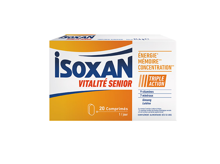 ISOXAN Vitalité Senior est spécialement conçu pour répondre aux besoins des seniors de plus de 50 ans. Grâce à une formule riche en vitamines, minéraux et extraits de plantes, ce complément alimentaire offre une triple action pour améliorer votre quotidien :