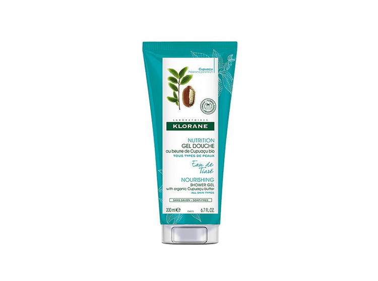 Riche en beurre de Cupuaçu, ce gel douche Klorane à l'eau de tiaré nettoie sans déssécher la peau grâce à une base lavante douce sans savon à la mousse légère.