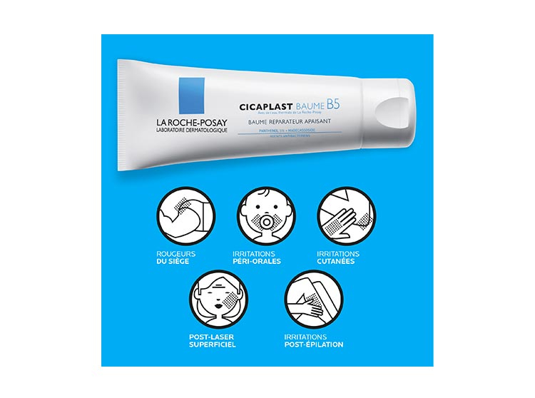 2 fois par jour sur peau propre et sèche, appliquez la crème réparatrice et apaisante Cicaplast Baume B5+ sur les parties fragilisées du visage, du corps et des lèvres, en couche fine ou épaisse selon l’intensité des rougeurs et des irritations. Évitez le contour des yeux.