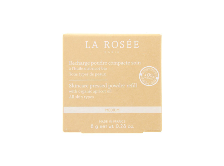 La Recharge de la Poudre Compacte Soin à l'huile d'abricot Bio de La Rosée convient à tous types de peaux.