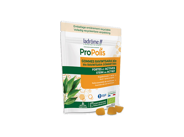 Fraîches et Toniques, elles sont élaborées en France à partir d’un extrait de Propolis brune et verte, et d’une huile essentielle de Ravintsara.