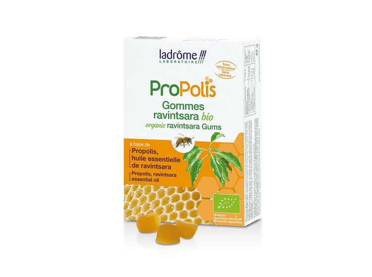 Gommes Bio bienfaisantes et rafraichissantes, à base de propolis et d'huile essentielle de ravintsara.