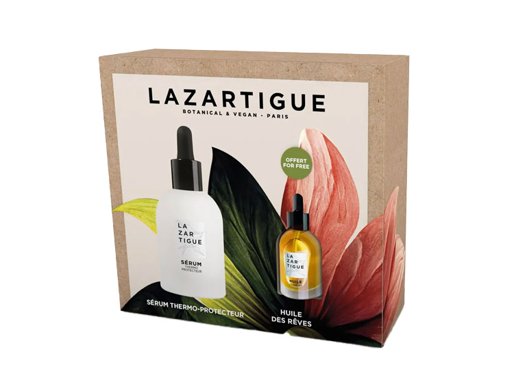 Le coffret sérum d'exception de la marque Lazartigue est conçu pour prendre soin des cheveux. En effet, il contient le sérum thermo-protecteur, qui va venir protéger les cheveux ainsi que l'huile des rêves qui elle, va venir sublimer les cheveux.