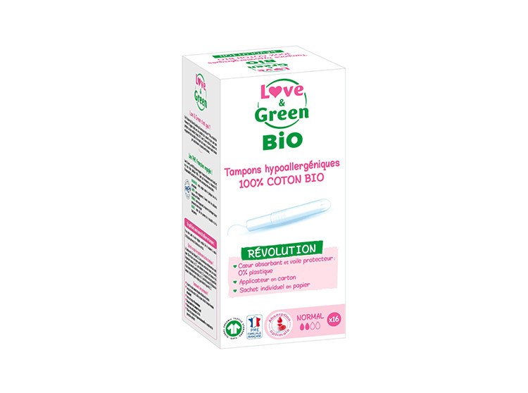 Découvrez les tampons hypoallergéniques Love & Green en 100% coton BIO certifié GOTS.