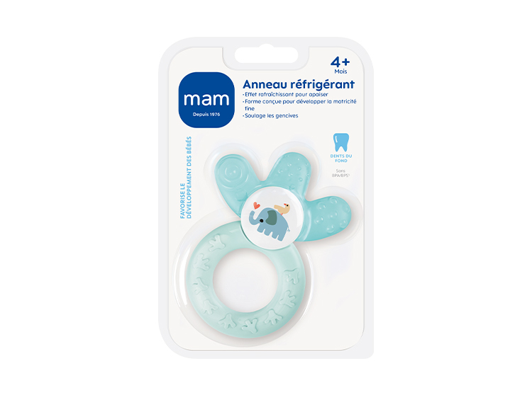 Les premières dents de bébé – une nouvelle aventure. Les designers de MAM ont mis au point un anneau de dentition à la fois cool et rafraîchissant. Entre mordillements, effets rafraîchissant et apaisant, l'anneau Cooler fait oublier aux bébés les désagréments de la poussée dentaire.
