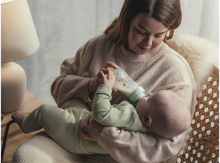 Avant de commencer à nourrir l'enfant, essuyer le biberon avec un linge propre.
