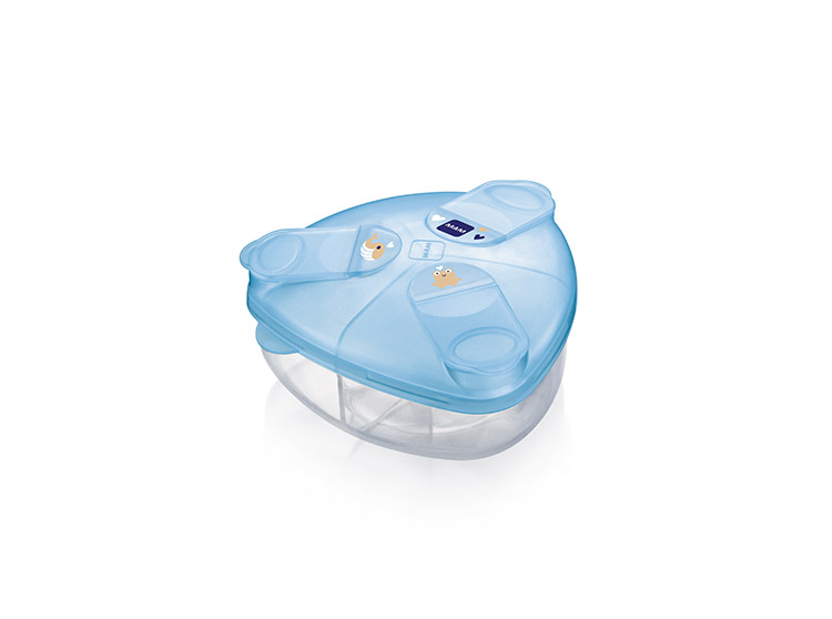 Le distributeur de lait en poudre est particulièrement léger et peut contenir jusqu'à 3 doses de lait en poudre. Grâce à sa forme triangulaire innovante, le lait en poudre est introduit dans le biberon sans laisser de résidus. Idéal pour des parents actifs et idéal pour les sorties.