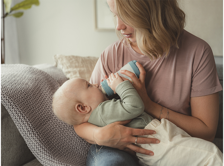Bébé accepte rapidement le biberon grâce à sa tétine de forme symétrique qui a la même forme qu'un mamelon.