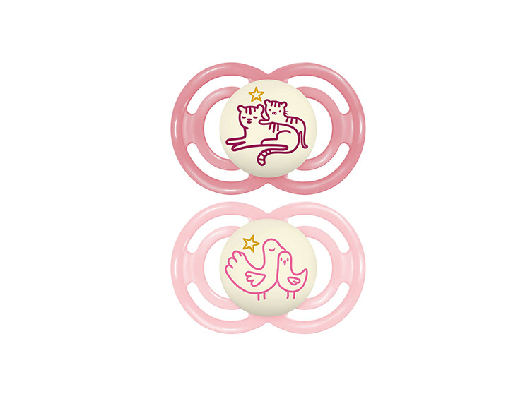 Les sucettes MAM Perfect Nuit Animaux sont spécialement conçues pour les enfants de 18 mois et plus. Créées en collaboration avec des pédiatres et des dentistes, elles respectent la physiologie de bébé tout en réduisant le risque de mauvais positionnement des dents. Fabriquées en silicone, elles sont 4 fois plus souples et 60% plus minces que les sucettes classiques, ce qui les rend idéales pour le confort de bébé. Leur téterelle symétrique assure une position correcte dans la bouche, tandis que le bouton phosphorescent permet de les retrouver facilement dans l'obscurité.