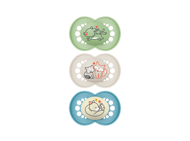 Les sucettes Original Nature sont dotées d’une collerette aérée qui permet à la peau de respirer, réduisant ainsi les risques d'irritation. Leur téterelle en silicone SkinSoft™ est ultra-douce et facilement acceptée par les bébés, garantissant confort et apaisement.